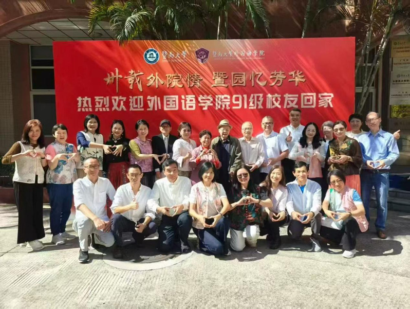11月16日,正值暨南大学119周年校庆日当日,外国语学院20多位91级校友,怀着对母校和老师同学的思念,从新加坡、澳大利亚和中国香港、澳门、深圳、清远等地,不辞万里,奔赴广州,相约齐聚暨南园,共同奔赴这场毕业30周年的青春之约。