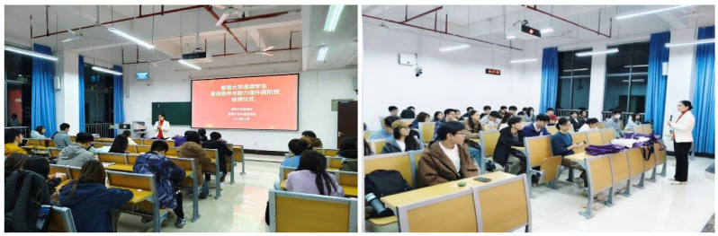 外国语学院指导师资配置与资源调配,确保培训体系科学实用、衔接有序。大学英语教学部组织优秀师资,本学期在石牌、番禺两校区开设4个班级,以小班互动研讨教学为特色,对130余名港澳籍本科生进行系统、专业的培训。