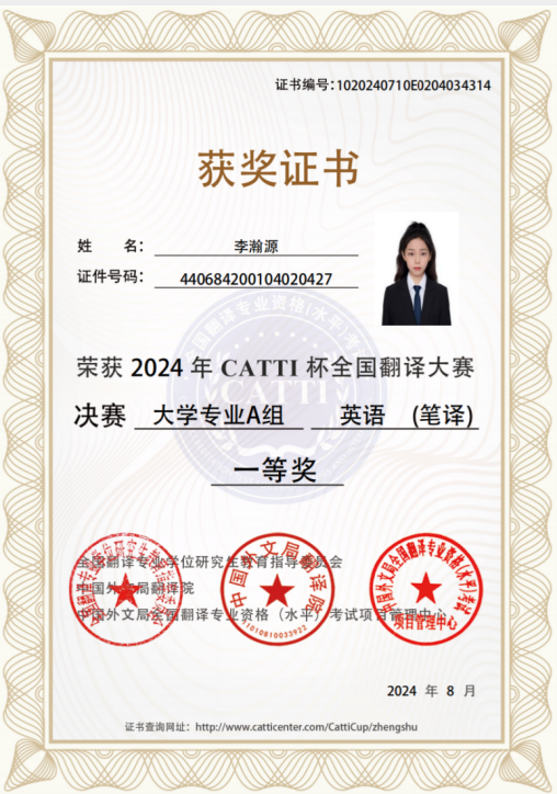 2024年CATTI杯全国翻译大赛复赛一等奖