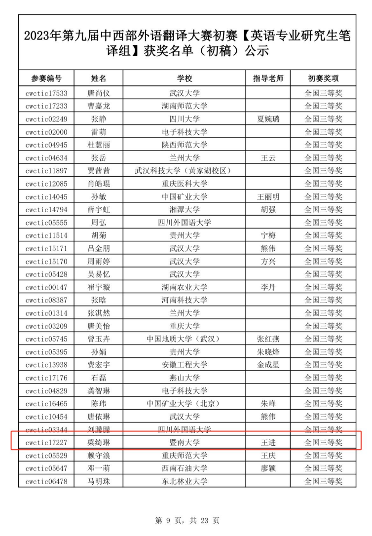 中央民族大学外国语学院全国外语学科研究生学术论文大赛二等奖和三等奖