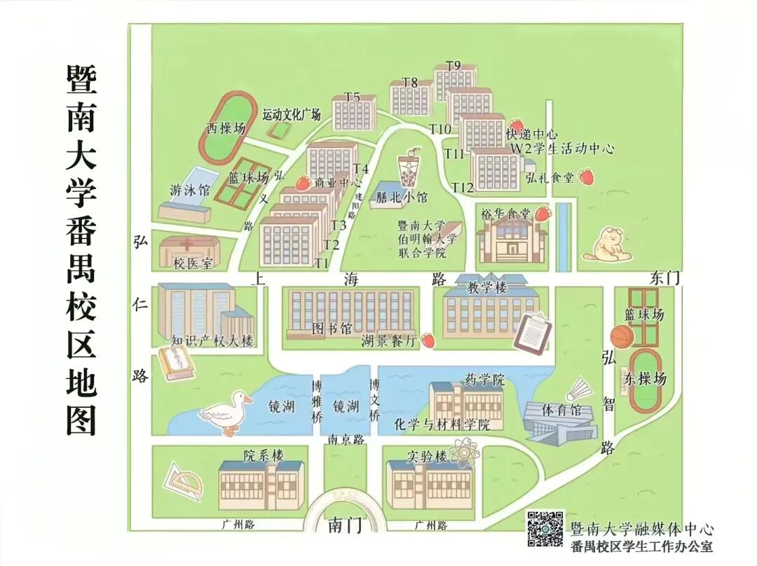 进到学校,当然要带各位熟悉咱们的校园环境啦,特附番禺校区地图一份: