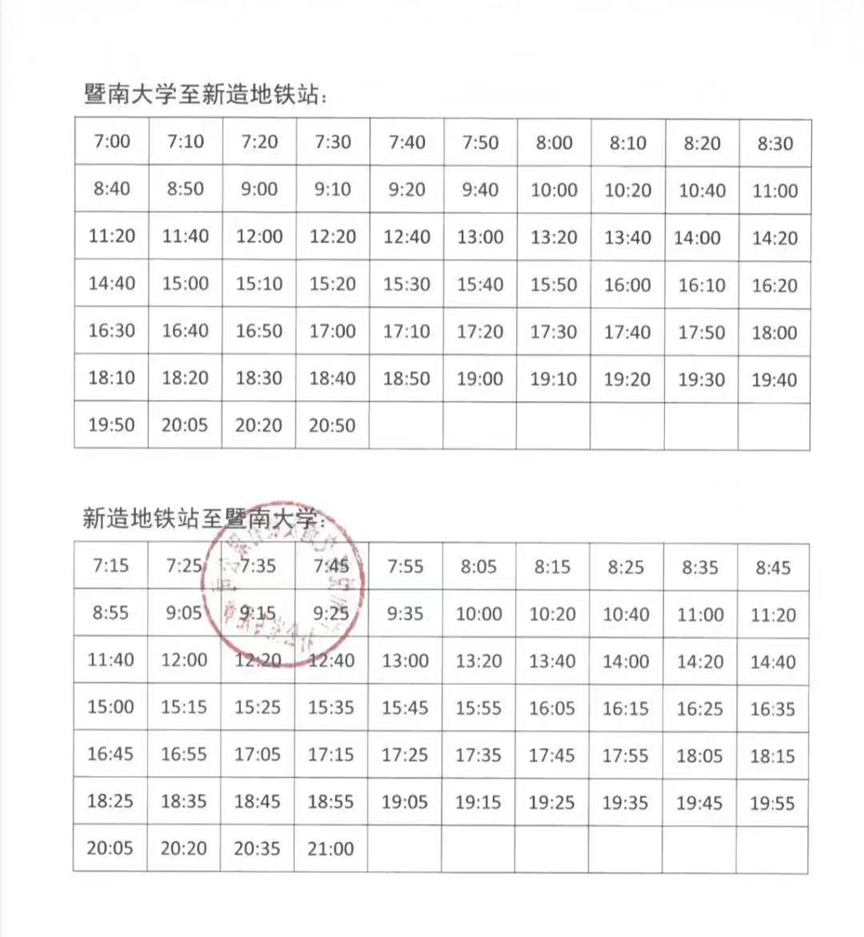 之后在A1口的公交站,走到公交站的最深处,等待标有去“暨南大学”告示牌的小绿公交车,就可以直达学校啦!