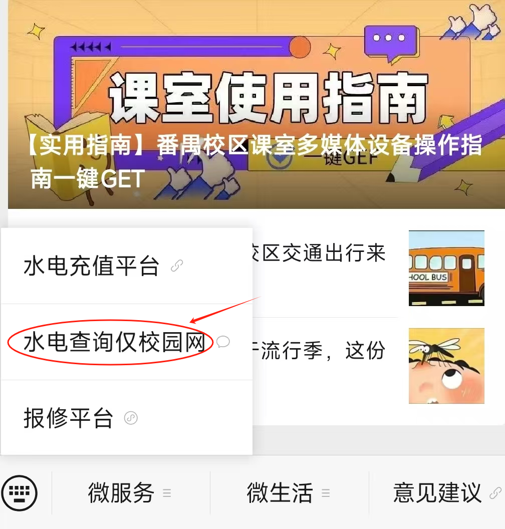 关于宿舍水电费的充值与查询,以及宿舍报修,可关注公众号“暨番微生活”。