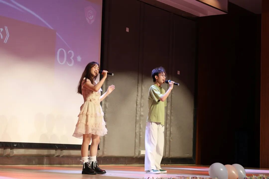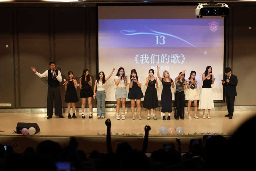 晚会的最后,新生助教们为大家带来合唱《我们的歌》。歌中旋律里流淌的远不止音符,更有助教们与新生们心灵的共振。在光影交织的夜幕下,它消融了初见时那份小心翼翼的陌生与距离,将其化作了一种并肩而立、心意相通的默契。那歌声里,有引路人的灯塔,也有后来人的星光,彼此辉映,共同照亮了属于这个温暖而明亮的夜晚。