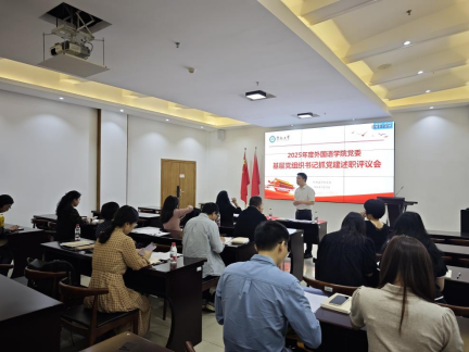 3月25日下午,外国语学院党委2025年度党支部书记述职评议考核会在学院100会议室召开。学院党委书记陈文举,院长、党委副书记蒲若茜,副书记李磊、党委委员、学院所属各党总支、党支部书记和师生党员代表参加会议。会议由陈文举主持。