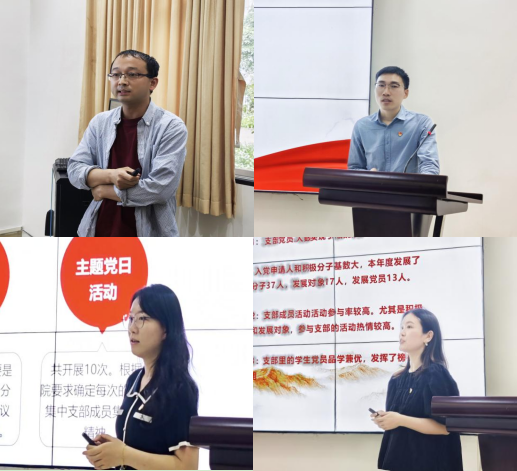 学院党委所属的2个党总支、5个教工党支部、4个学生党支部书记依次进行党建工作述职,汇报过去一年加强支部建设、履行抓支部党建工作第一责任人职责和推进党建工作与业务工作“一融双高”等工作,同时深刻剖析本支部存在的问题及原因,思考提出下一步工作的思路和举措。